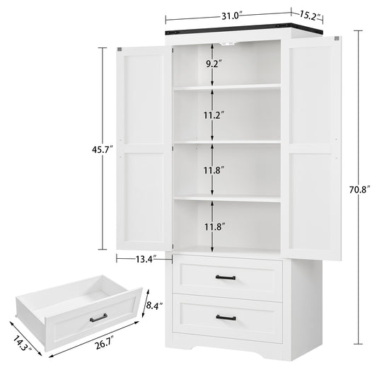 USIEKY 71" H Pantry Cabinet with 2 Drawers & 3 Shelves