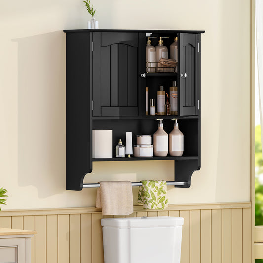 Bathroom Wall Cabinet with Towel Bar, Bathroom Cabinet with Adjustable Shelf, Medicine Cabinet for Laundry Room, Living Room, Black