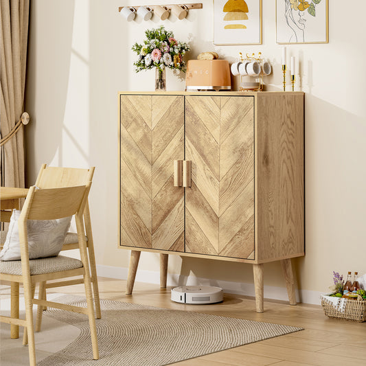 Storage Cabinet with Adjustable Shelf, Buffet Cabinet with Doors, Accent Cabinet for Kitchen, Living Room, Bathroom, Entryway, Natural
