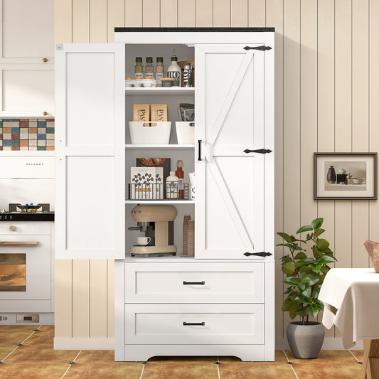 71" Pantry Cabinet, Farmhouse Kitchen Storage Cabinet with 2 Barn Doors & Adjustable Shelves, Kitchen Pantry, Kitchen Cabinet for Dining Room, Home Office, Bathroom, White